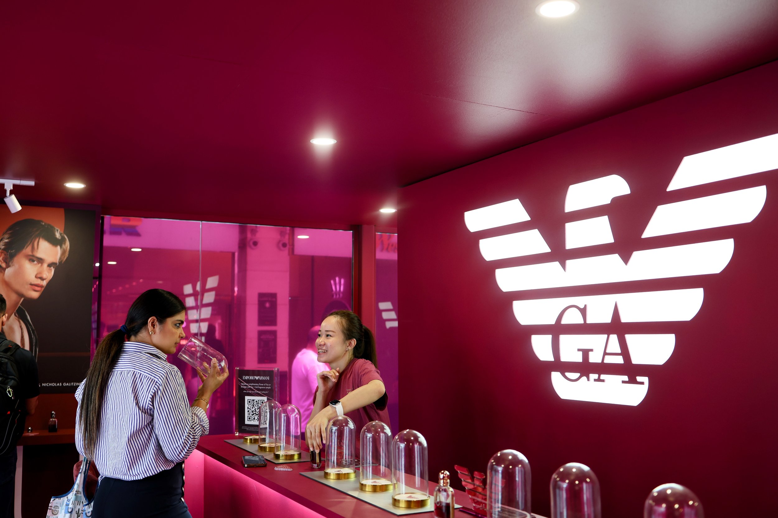 - What We Did We delivered a fully branded photo booth experience for Armani, featuring custom-designed overlays, a premium backdrop tailored to their campaign aesthetic, and instant digital sharing so every guest walked away with on-brand content ready for social media.